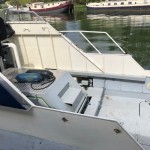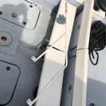 De railing aan de stuurboord achterkant heeft vroeger schade gehad. Deze was degelijk maar slordig met beugels hersteld. Nu zit het weer op de originele manier vast. Bert heeft ervoor gezorgd dat de afgebroken aluminium plaatjes er weer aangelast werden. Alle boutjes en moertjes heb ik vervangen door rvs.