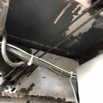 Nieuwe beugels gemaakt voor het rubber gedeelte van de lucht-inlaat en uitlaat van de motorruimte. Hoe het origineel vast zat weet ik niet. Maar tot vandaag zat het met tiewraps vast en dat sloot niet goed af.
