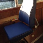De opnieuw beklede stoelkussens weer gemonteerd. Ze zijn erg mooi geworden, Smits Stoffeerderij heeft goed werk geleverd.