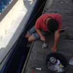 De afgelopen week hebben Reinout en ik veel geschuurd, geplamuurd en geschilderd aan de buitenkant van de P-07.