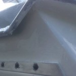 In de afgelopen dagen heb ik de voorkant van de opbouw geschuurd, geplamuurd en in de grondverf gezet. Vandaag heeft buurmeisje Feija alles gelakt.