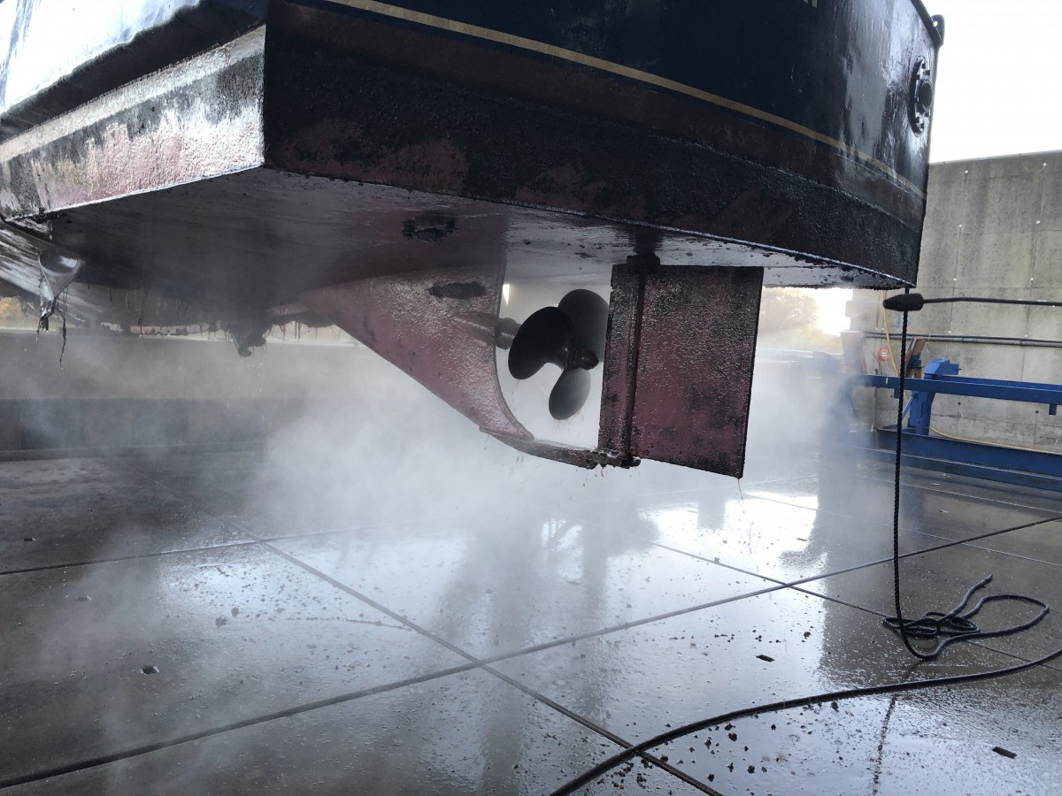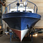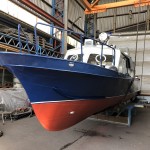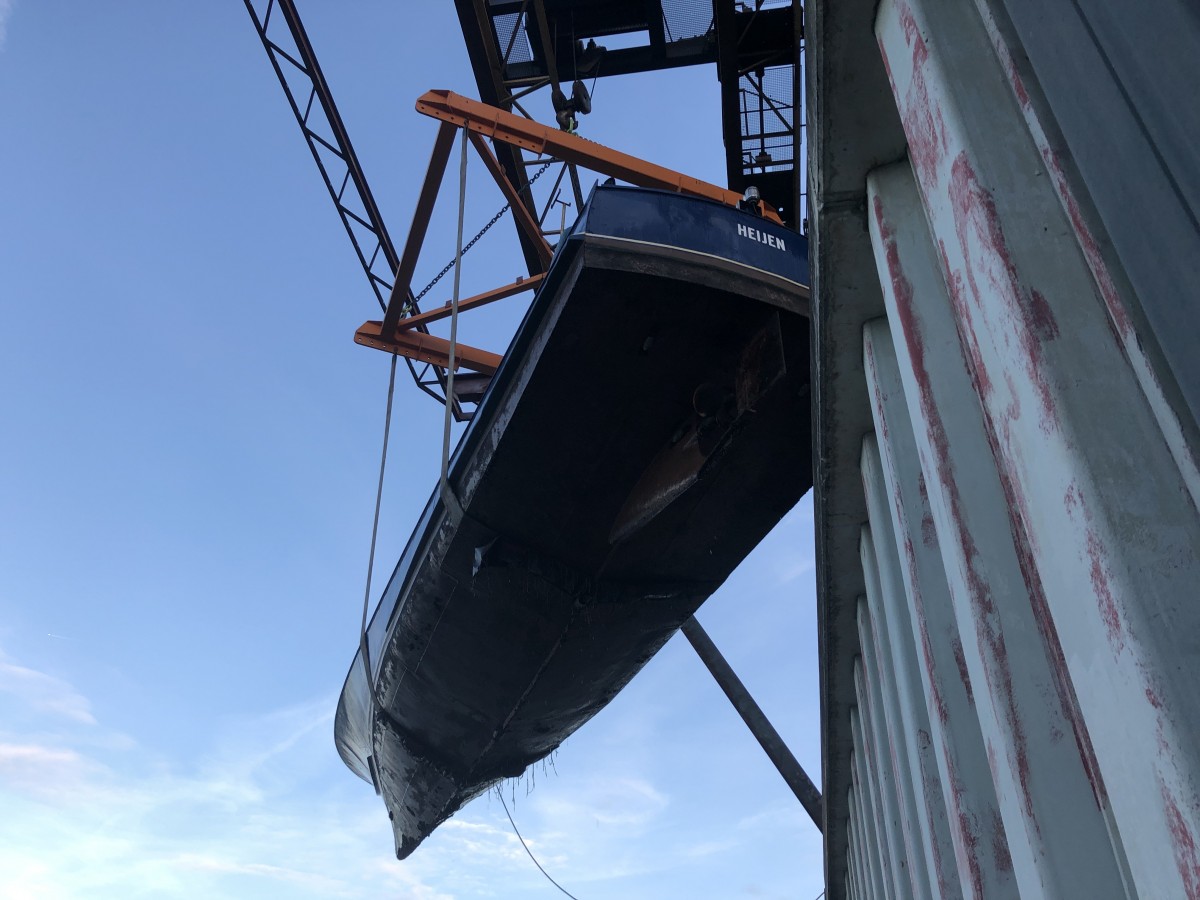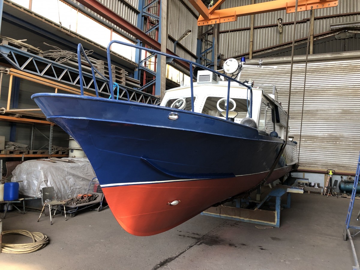 De P-07 is uit het water geweest bij Scheepswerf van Wezel. Na een week werken met hulp van Thijn en Arn zit de romp weer netjes in de verf.