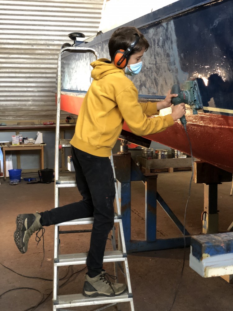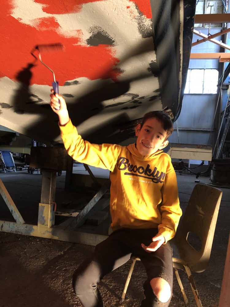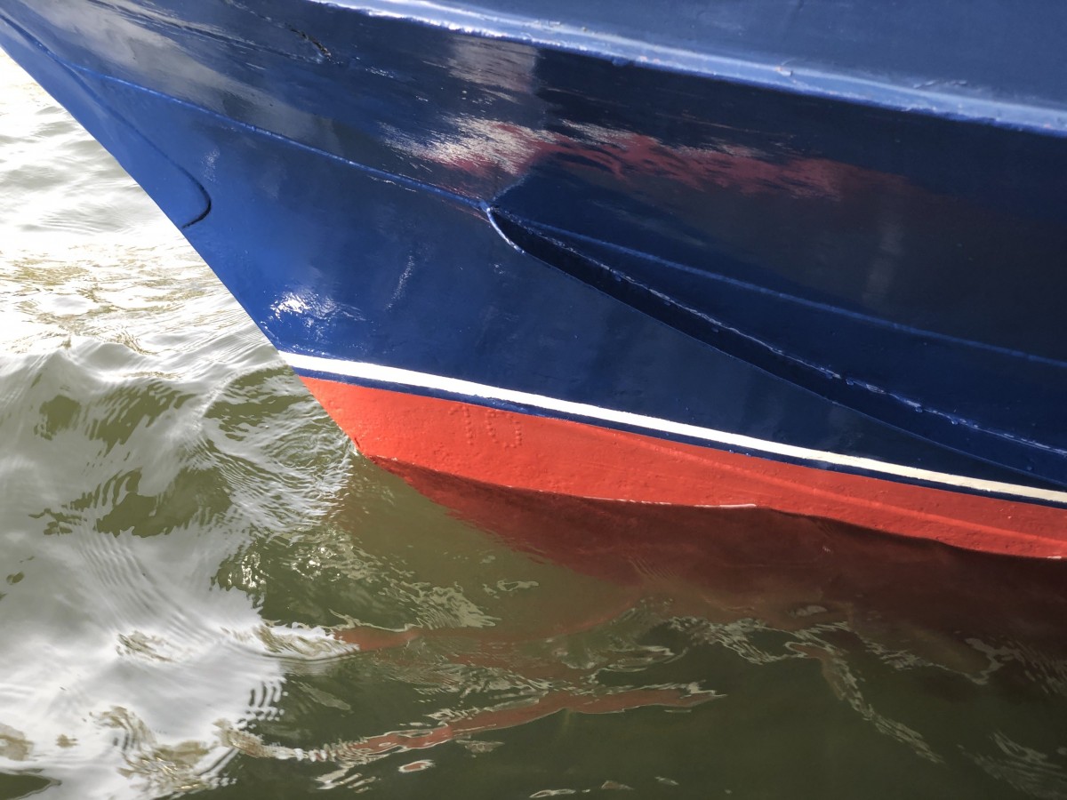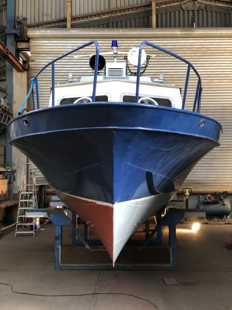 De P-07 is uit het water geweest bij Scheepswerf van Wezel. Na een week werken met hulp van Thijn en Arn zit de romp weer netjes in de verf.