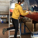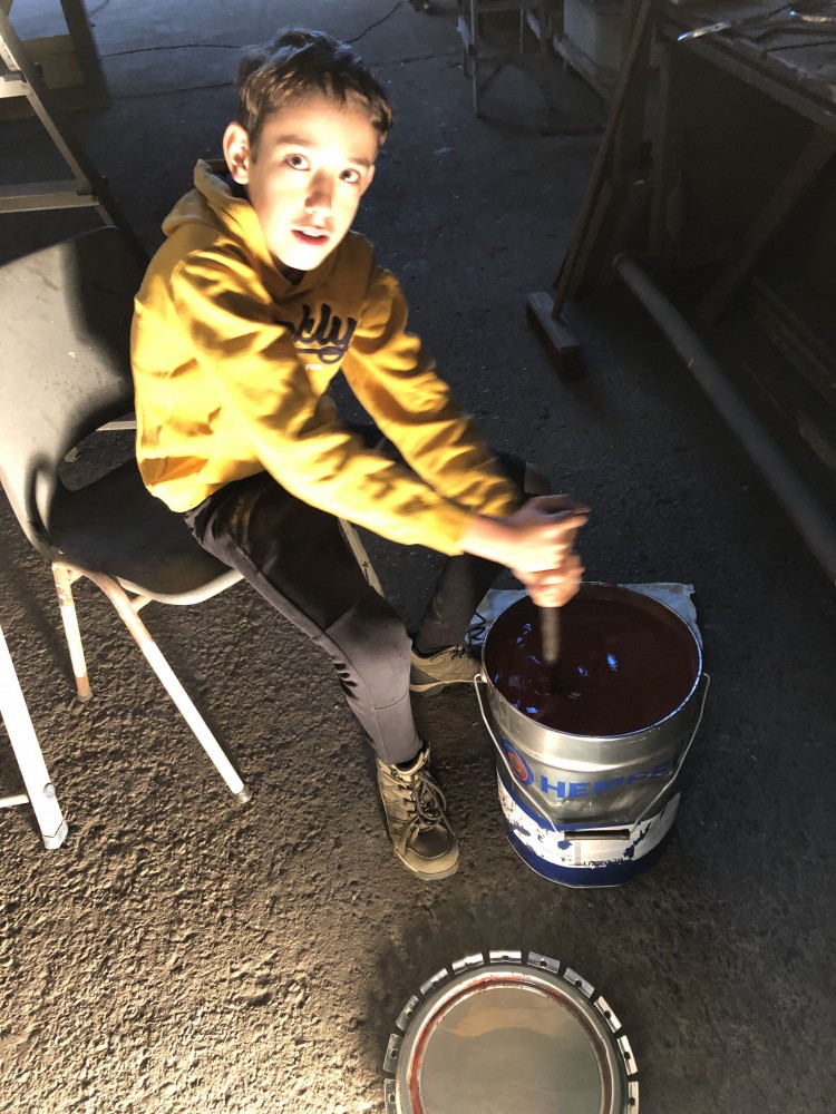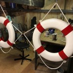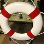 De reddingsboeien weer ontvet, geschuurd en geschilderd. Ze zijn als nieuw geworden.